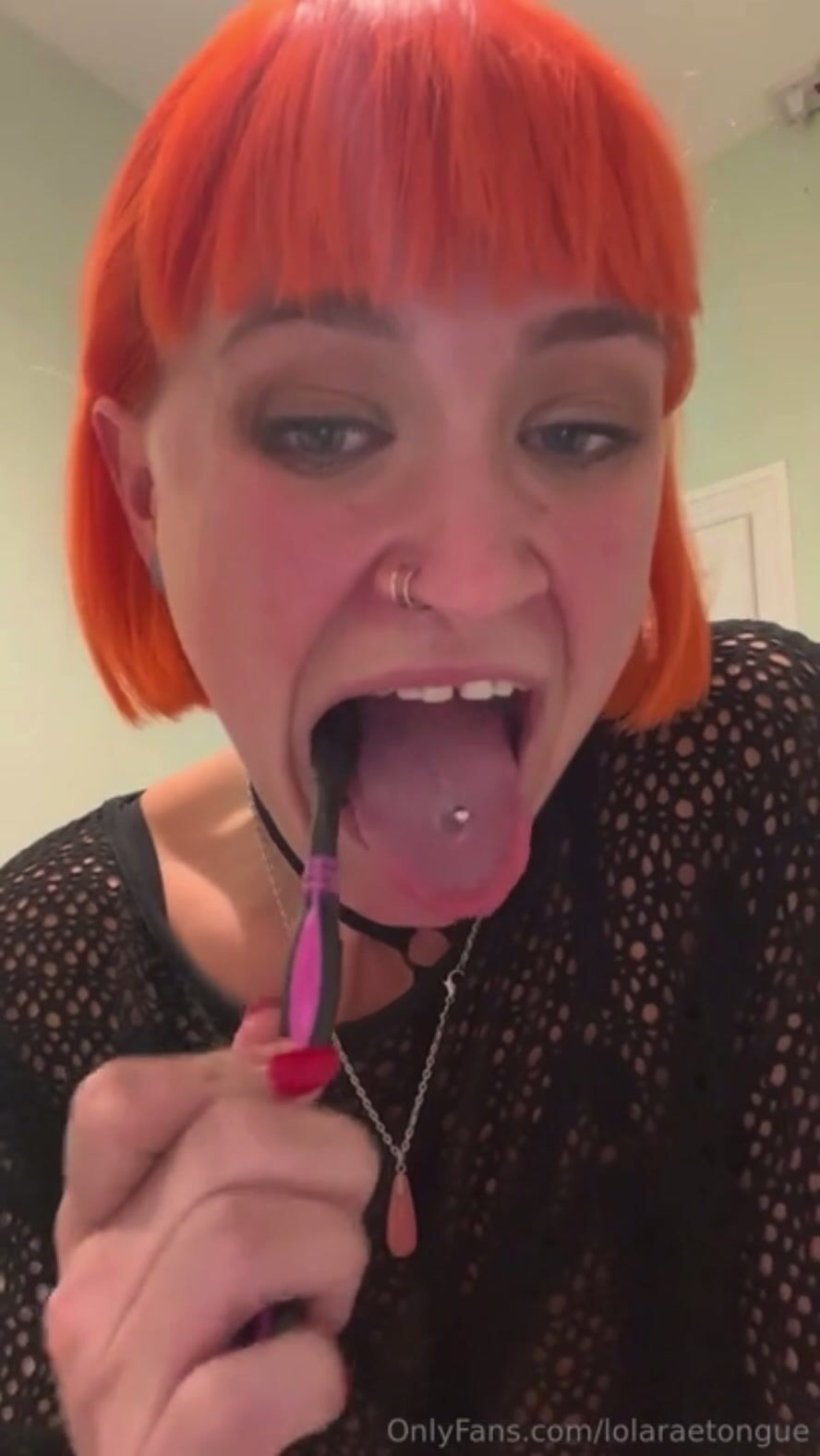She’s brushing, drooling and teasing. Sweet tongue and fresh breath.